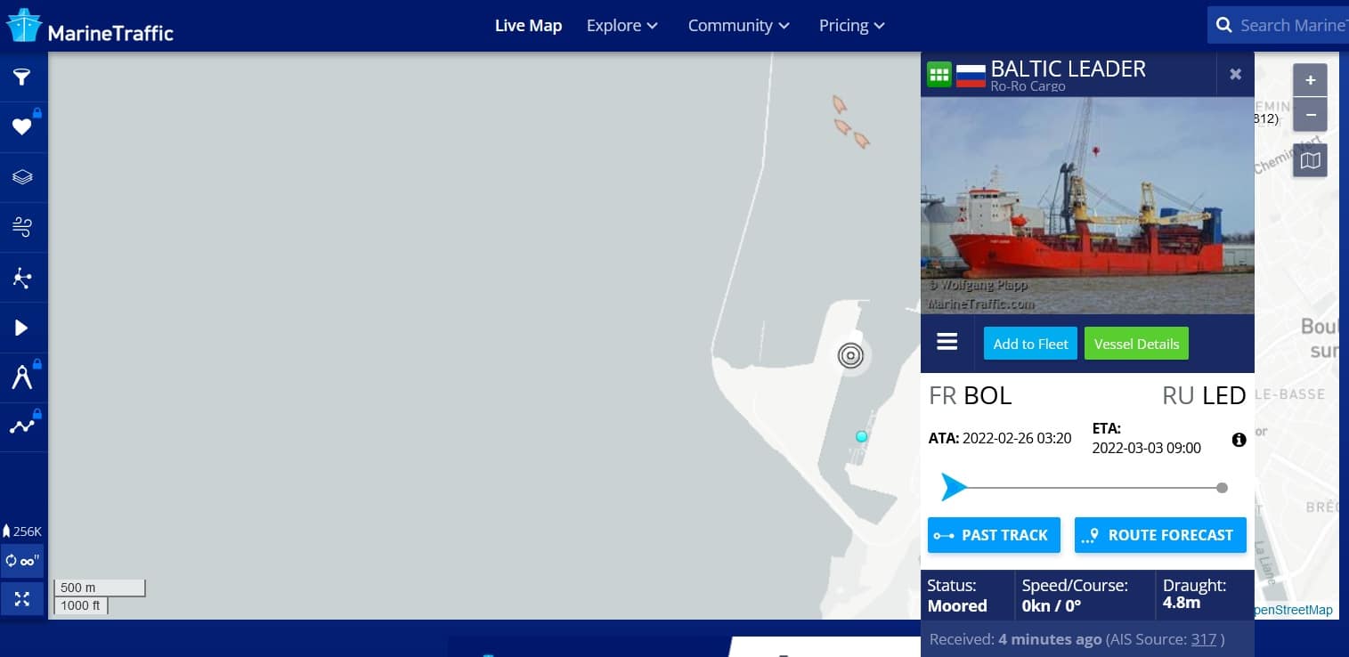 An official told the BBC, “A 127 meters long Russia cargo ship called the ‘Baltic Leader’ transporting cars has been intercepted overnight by the French Navy in the Channel and escorted to the Port of Boulogne-Sur-Mer in Northern France.