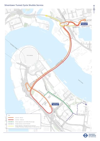 TfL will also shortly begin to install the new shelters and cycle racks for the zero-emission cycle-shuttle service, which will have a bespoke design to support cyclists and distinguish them from the regular bus network. The service will operate every 12 minutes, seven days a week from 06:30 to 21:30. It will have two stops, one on each side of the river, with the ‘north’ stop located on Seagull Lane close to Royal Victoria DLR station, and the ‘south’ stop located on Millennium Way near the junction with Old School Close.