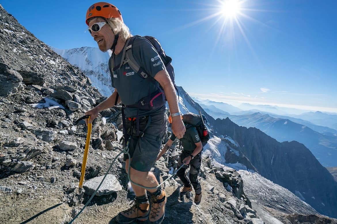 The Virgin Group founder was climbing with his son Sam when rocks “the size of small cars” crashed over their heads before they reached the summit in the Alps.